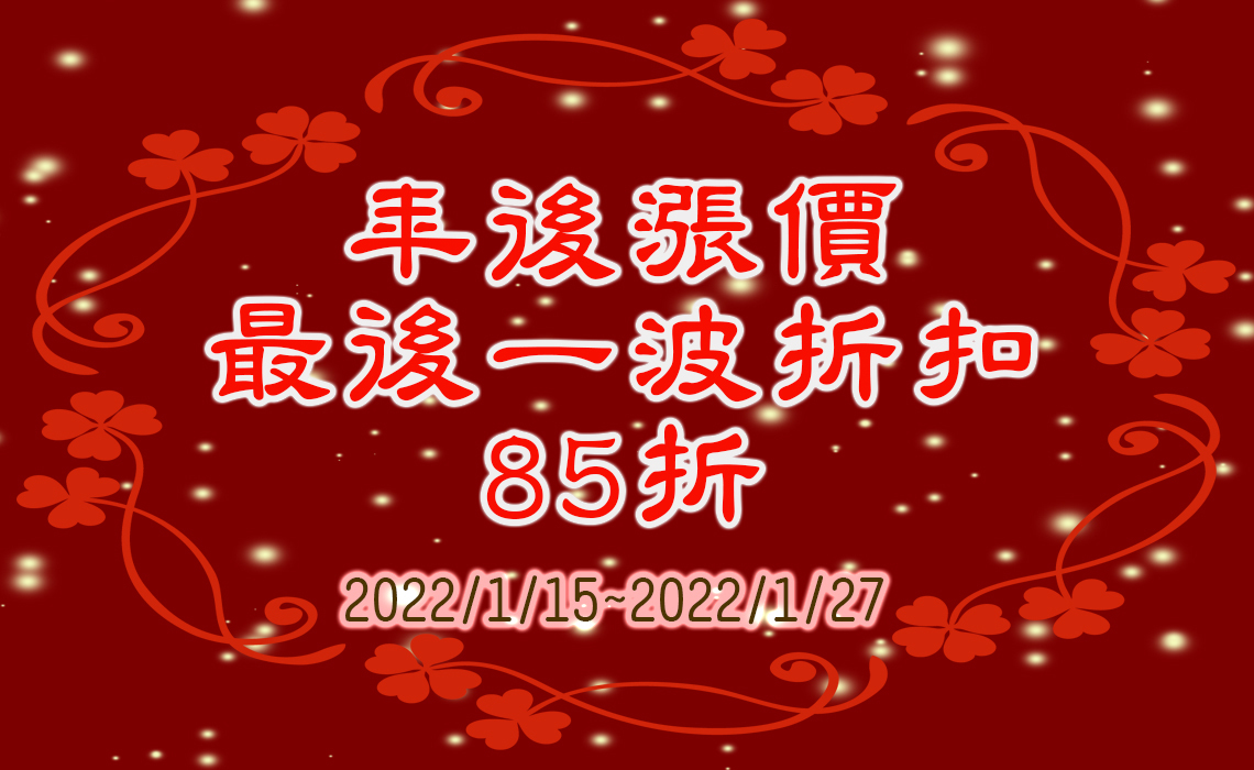 • 🌸 2022.1 春節前最後出貨日1/26 (),※上午十一點前確認訂單,如您訂購的商品沒有缺貨的狀況,雖可於當日寄出,仍請考量春節前宅配須更長的時間,不保證春節前一定到貨,請見諒。